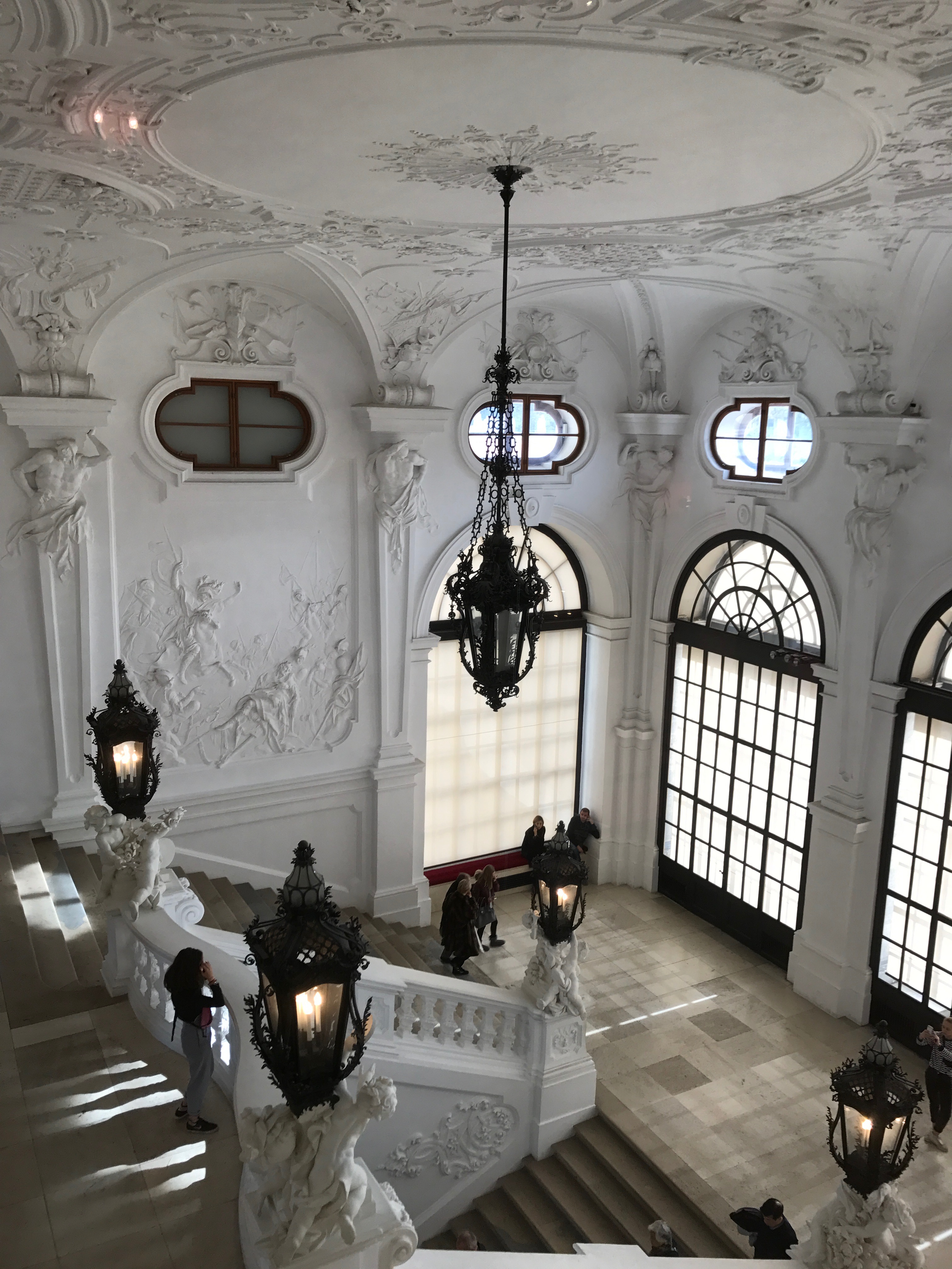 We weaved our way through the perfectly manicured, sculpture-and-fountain dotted gardens in front of the Belvedere museum. Vienna is known for museums, and one of its crown jewels is The Belvedere. Entrance was $12 even with a student discount, but well worth it.
